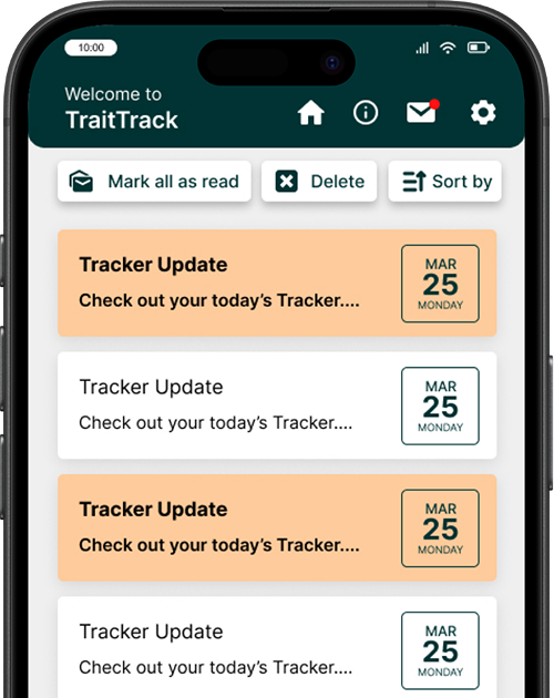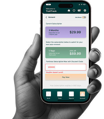 Trait Track Personal is available now on both iOS and Android. Get started in just a few taps.